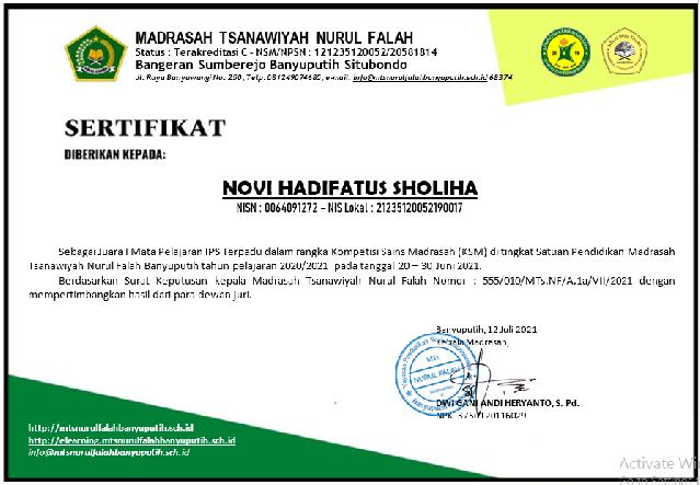 Selamat Datang di Website MADRASAH TSANAWIYAH NURUL FALAH. Terima Kasih Kunjungannya